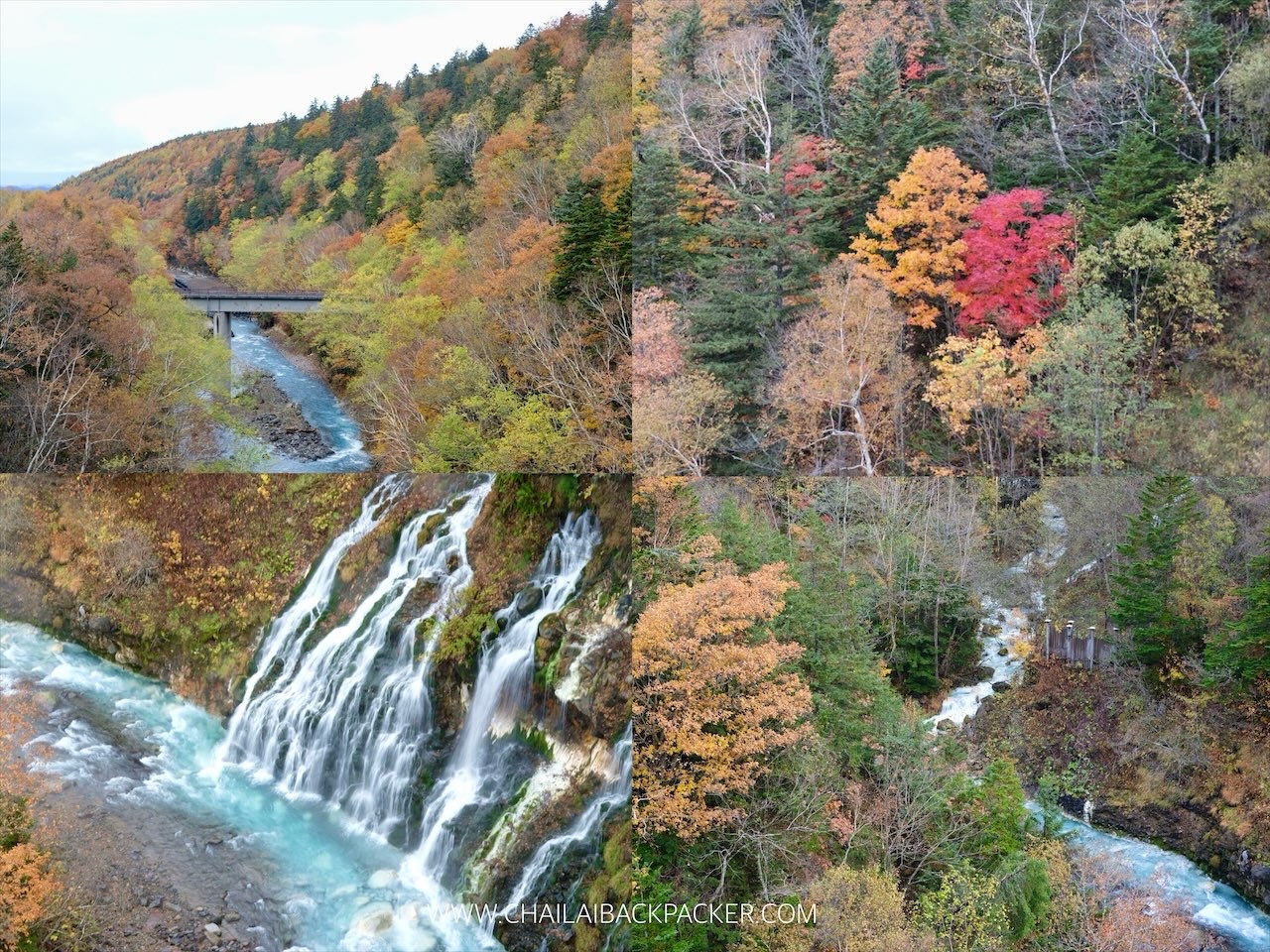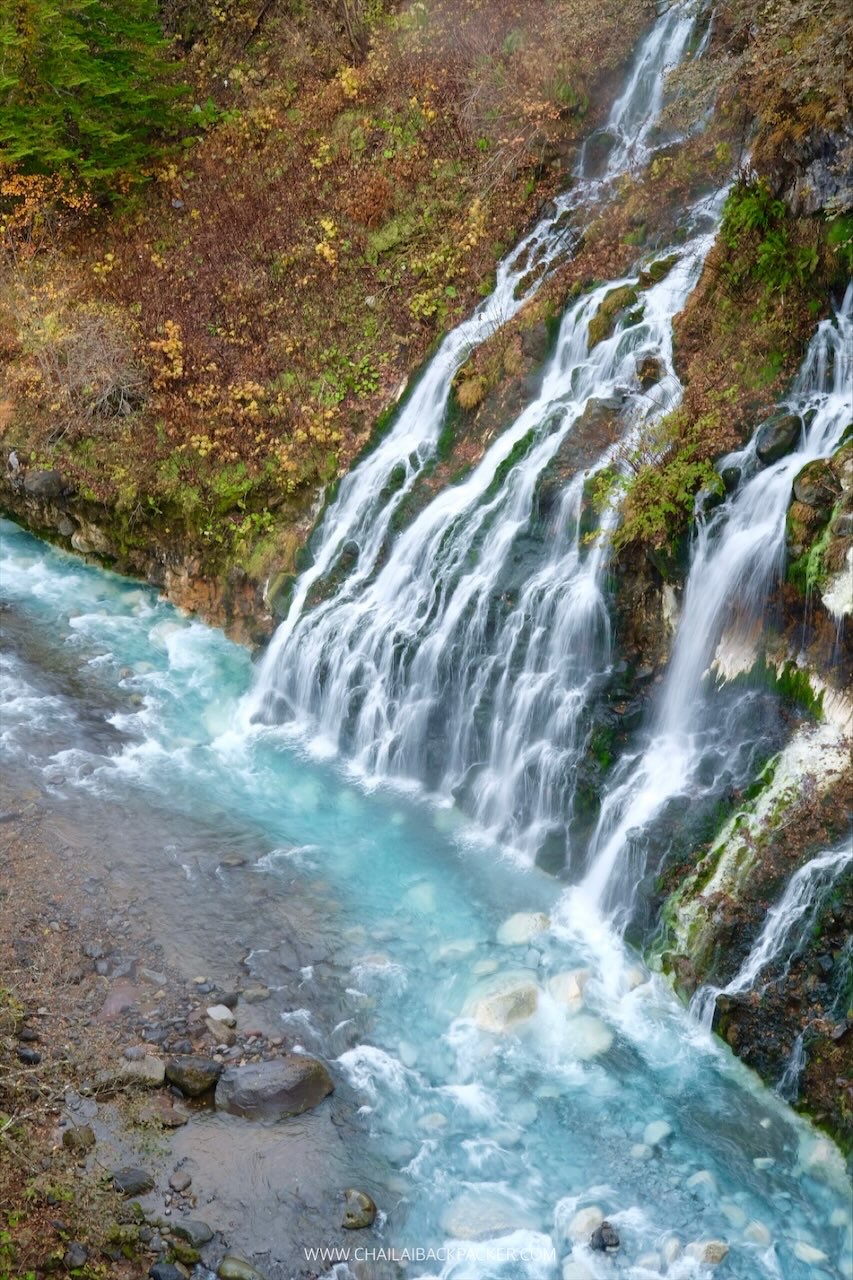 น้ำตกชิราฮิเงะ (Shirahige Waterfall) น้ำตกที่ไหลทะลุตกลงมาตามหน้าผาหิน มีความสูงประมาณ 30 เมตร ซึ่งจุดเด่น คือ “สีน้ำฟ้า-ขาว” จากแร่ธรรมชาติที่ผสมกับน้ำในแม่น้ำบิเอะ เดินทางมาชมในช่วงใบไม้เปลี่ยนสีแบบนี้ ก็จะเห็นภาพของน้ำตกสีฟ้า ตัดกับแนวต้นไม้สีแดง-ส้มเหนือหน้าผาจะสวยงามมากเหมือนภาพจากโปสการ์ดเลย