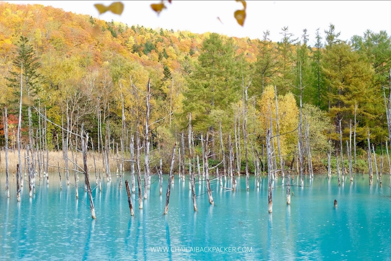 บึงน้ำสีฟ้า บิเอะ (Shirogane Blue Pond) แลนด์มาร์กขึ้นชื่อของเมืองบิเอะ “บึงน้ำสีฟ้า” ที่ใสเป็นสีฟ้าเทอร์ควอยซ์แบบธรรมชาติ ประกอบกับมีตอไม้ของต้นไม้แห้งอยู่กลางบึง สวยงามแปลกตา