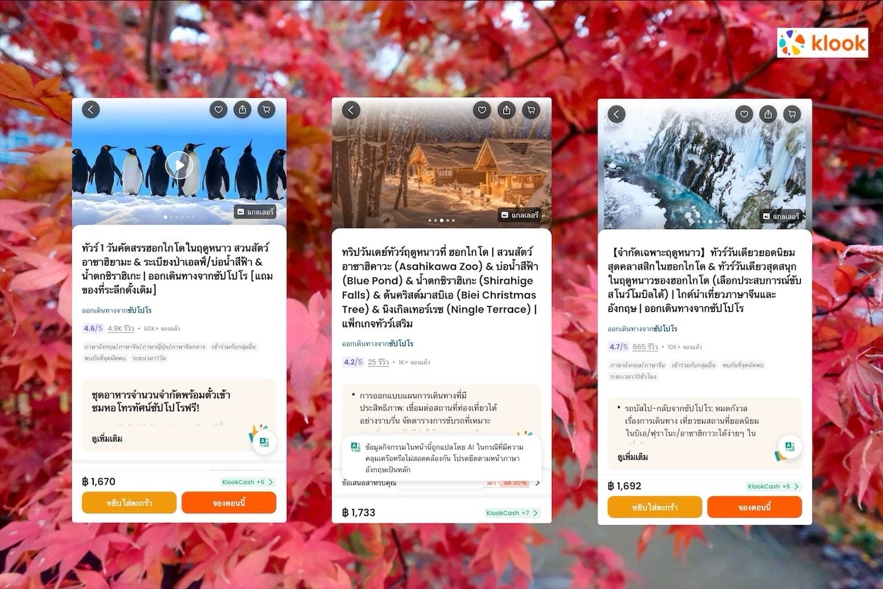ใครที่สนใจเที่ยวแบบ “วันเดย์ทัวร์” ในญี่ปุ่น ก็สามารถจองผ่าน Klook ได้ ซึ่งมีเส้นทางท่องเที่ยวแบบ 1 วัน ให้เลือกหลายโปรแกรม หลายเส้นทางเลย โดยเข้าไปเลือกโปรแกรมที่ต้องการจองได้ที่แอป Klook หรือ Website https://www.klook.com/th/