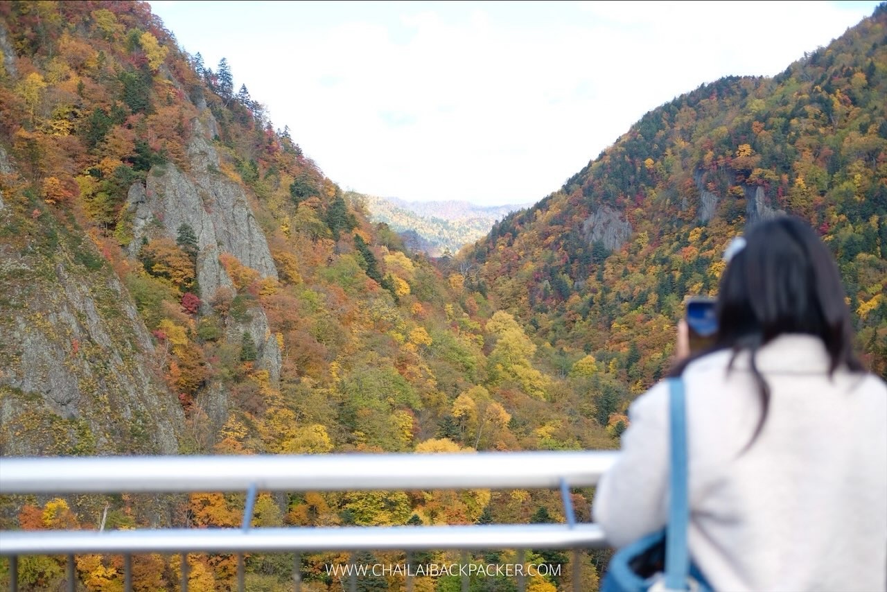 เขื่อนโฮเฮเคียว (Hoheikyo Dam) ถ้ามองหาจุดชมวิวใบไม้เปลี่ยนสีแบบอลังการก็ต้องจุดนี้เลย! ที่ “เขื่อนโฮเฮเคียว” จุดชมวิวบรรยากาศที่มองเห็นแบบพาโนรามา โดยมองเห็นทั้งแนวภูเขาที่ถูกทาด้วยสีแดง–ส้มเป็นชั้นๆ ไล่ไปจนสุดปลายหุบเขา